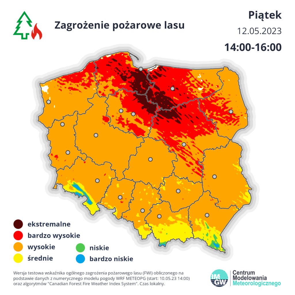 Według najnowszych prognoz Instytutu Meteorologii i Gospodarki Wodnej jutro w okolicach Lęborka na niektórych obszarach wystąpi „ekstremalne zagrożenie pożarowe”. Dziś ma ono status „bardzo wysokie”.