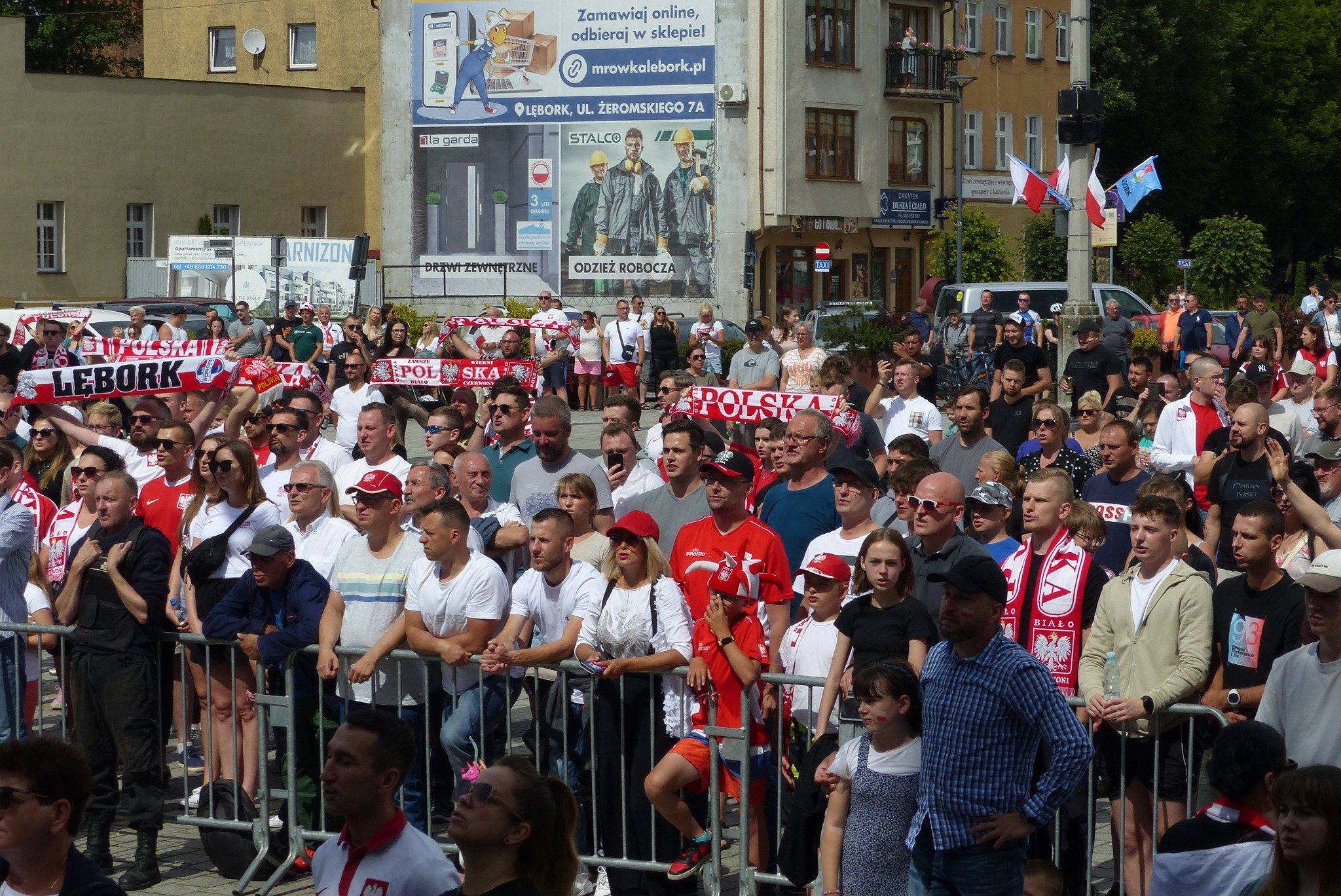 Mecz Polaków z Holendrami obejrzało dziś na żywo mnóstwo osób. Było emocjonująco, biało-czerwono i kulturalnie. Plac Pokoju w Lęborku wypełnił się kibicami, którzy przyszli wspólnie dopingować naszą reprezentację. Wspaniała atmosfera, pełna entuzjazmu i sportowej rywalizacji, sprawiła, że plac zamienił się w prawdziwe centrum piłkarskich emocji.