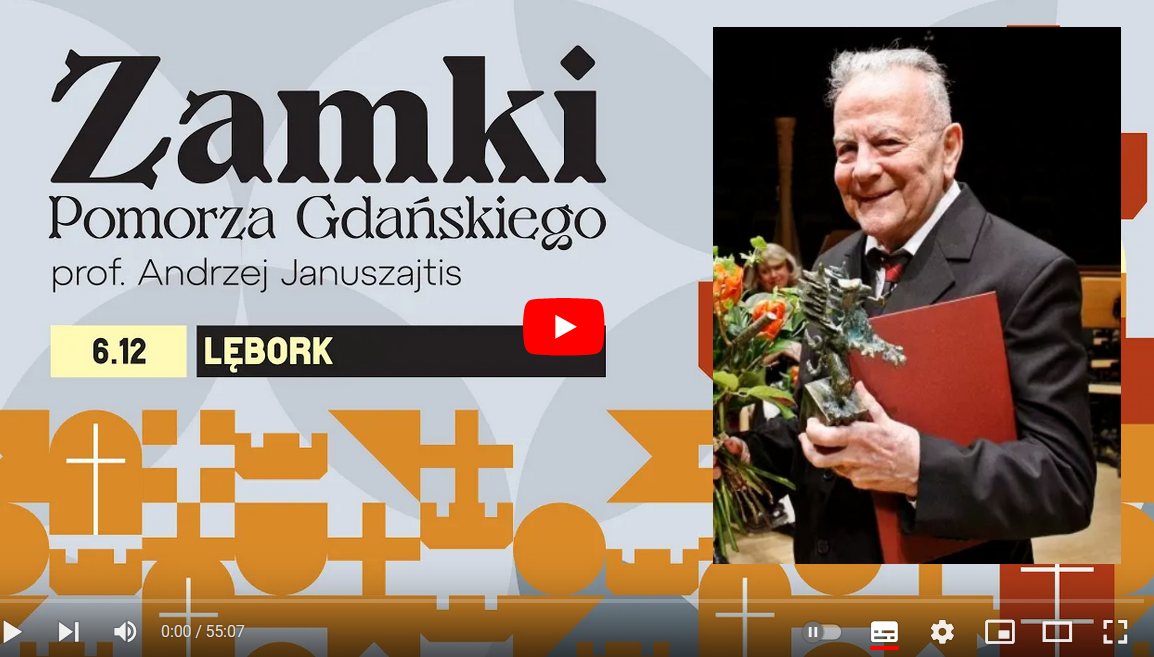 Pod tytułem „Zamki Pomorza Gdańskiego – Lębork”, kilka miesięcy temu odbył się otwarty wykład zorganizowany przez Nadbałtyckie Centrum Kultury w Gdańsku. Spotkanie poprowadził prof. Andrzej Januszajtis, znany znawca historii Gdańska i Pomorza, fizyk, nauczyciel akademicki i pasjonat historii. Podczas wykładu, wspomaganego ciekawymi ilustracjami, profesor przybliżył historię lęborskiego zamku, ratusza oraz innych kluczowych miejsc w mieście.