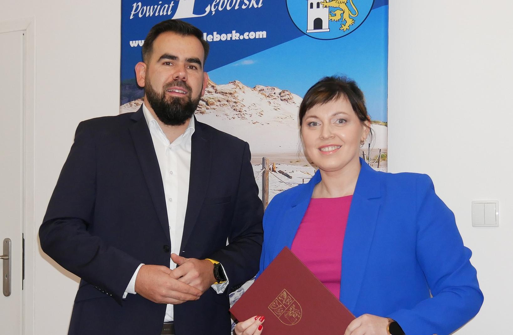 Na zdjęciu nowa Sekretarz Powiatu Danuta Fedyniak oraz Tomasz Litwin – Starosta Lęborski.