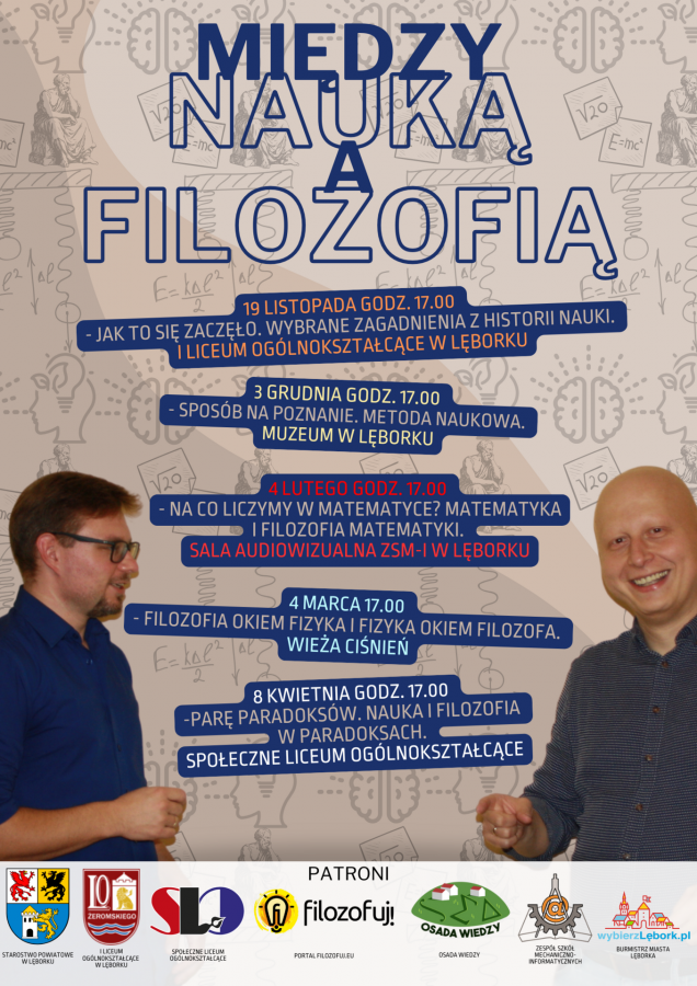 - 4 lutego w Zespole Szkół Mechaniczno-Informatycznym w Lęborku: Na co liczymy w matematyce? Matematyka i filozofia matematyki.