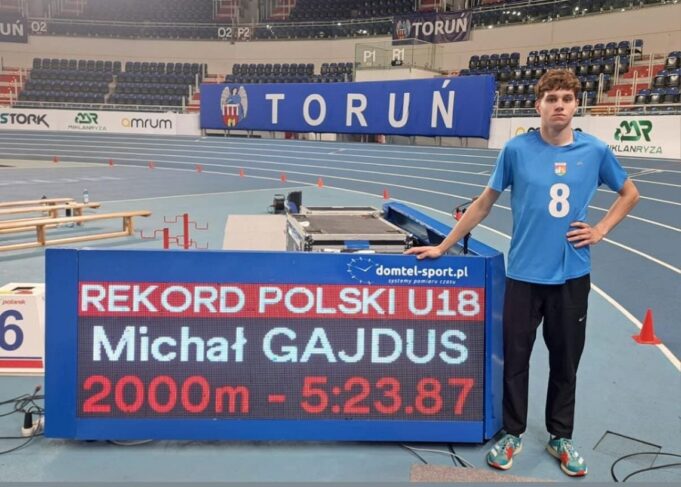 Michał Gajdus, reprezentant Lęborskiego Klubu Biegacza im. Braci Petk, osiągnął spektakularny sukces podczas 47. Memoriału Grzegorza Duneckiego w Toruniu. W niedzielnych zawodach (02.02.2025 r.) w Arena Toruń, młody lęborczanin pobił rekord Polski juniorów młodszych w biegu na 2000 metrów, uzyskując czas 5:23.87. Poprzedni rekord, ustanowiony w 2014 roku, wynosił 5:29.12.