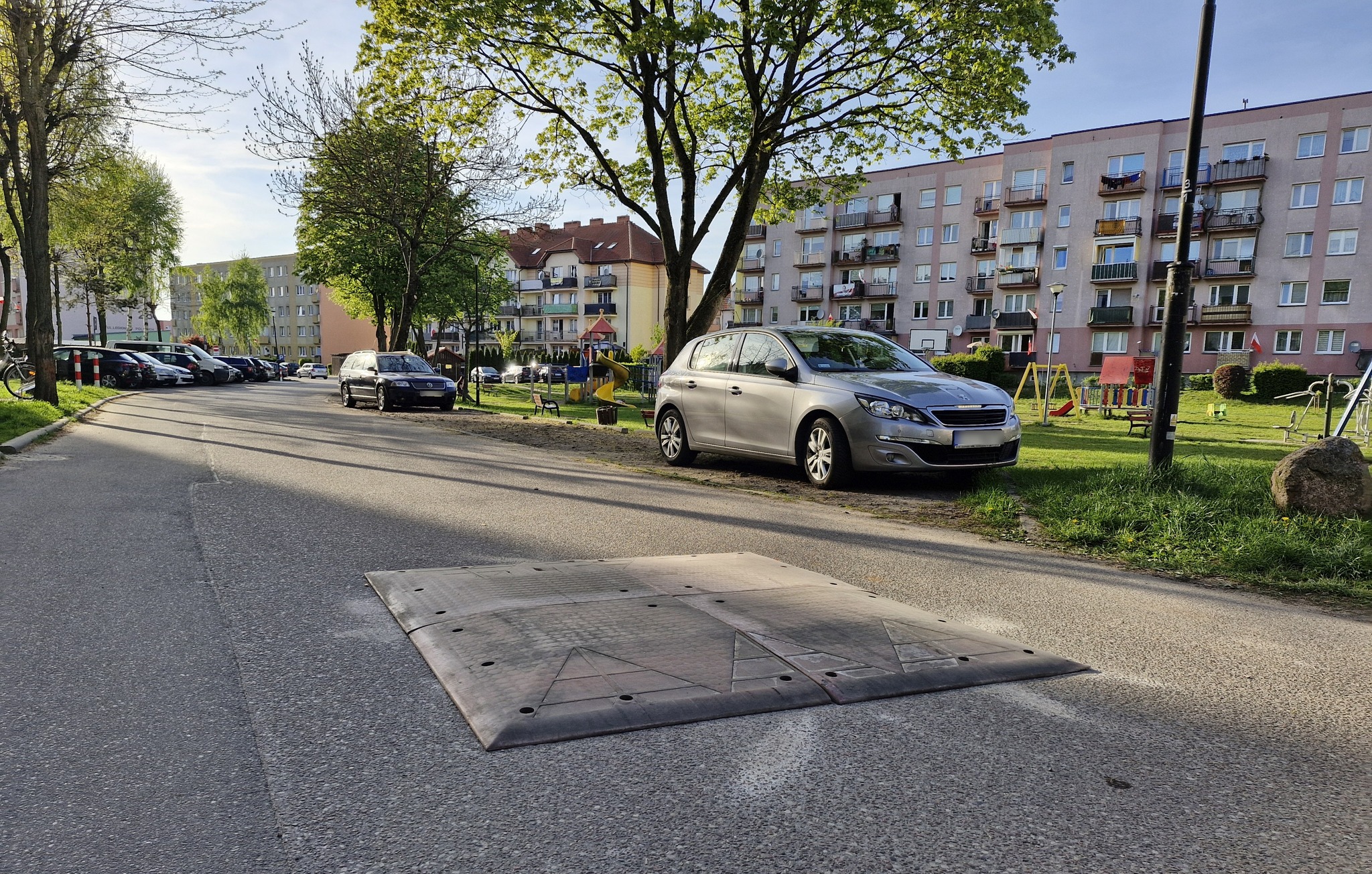 Na osiedlowej uliczce przy bloku Wojska Polskiego 34 w Lęborku, na prośbę mieszkańców, zamontowano pojedynczy próg zwalniający w pobliżu placu zabaw.