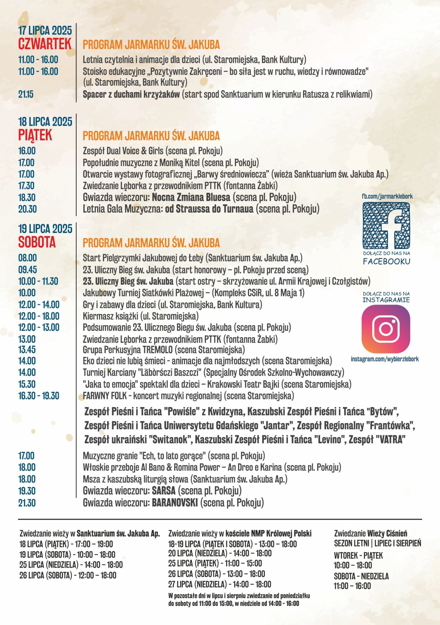 – To będzie wyjątkowa edycja – w nowym formacie, z jeszcze większym rozmachem. Więcej życia, więcej muzyki, więcej wspólnego świętowania! – mówi Jarosław Litwin, burmistrz Lęborka. – Przygotowaliśmy dwa tygodnie atrakcji – od koncertów takich gwiazd jak Nocna Zmiana Bluesa, Sarsa, Baranovski czy Happysad, po turnieje sportowe, widowiska dla dzieci, rekonstrukcje historyczne i wyjątkowe wydarzenia duchowe. Jarmark św. Jakuba w 2025 roku to coś więcej niż wydarzenie – to doświadczenie, które trzeba przeżyć!