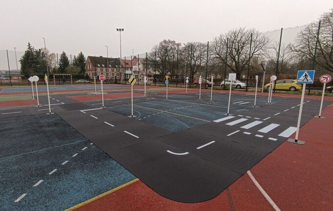 Przy kompleksie sportowym obok Szkoły Podstawowej nr 7 w Lęborku uruchomiono mobilne miasteczko ruchu drogowego, które ma służyć nauce bezpiecznego poruszania się po drogach. To miniaturowa replika ulic i skrzyżowań, wyposażona w znaki drogowe i rondo, idealna do praktycznego przyswajania przepisów ruchu drogowego i przygotowania do egzaminu na kartę rowerową.