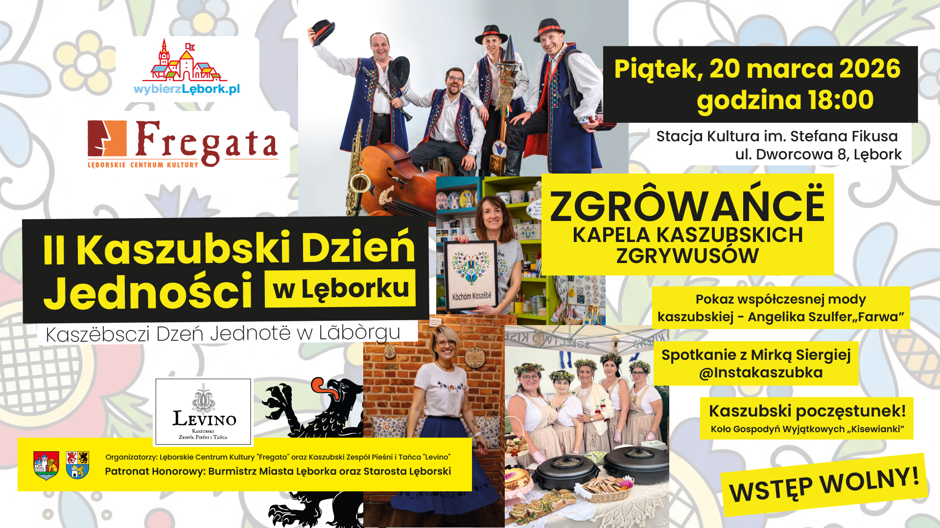 Lęborskie Centrum Kultury „Fregata” zaprasza na II Kaszubski Dzień Jedności w Lęborku. W piątek, 20 marca 2026 roku, w Stacji Kultura imienia Stefana Fikusa w Lęborku spotkają się Kaszubi z powiatu lęborskiego oraz sympatycy naszej regionalnej tożsamości. Początek wydarzenia o godzinie 18:00.