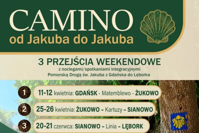 Lęborski Klub Przyjaciół Pomorskiej Drogi św. Jakuba oraz Lokalna Organizacja Turystyczna Ziemia Lęborska – Łeba zapraszają na trzecią edycję wspólnego pielgrzymowania „od Jakuba do Jakuba”. Pierwszy z trzech zaplanowanych etapów odbędzie się w najbliższy weekend, 11-12 kwietnia 2026 r., na trasie prowadzącej z Gdańska przez Matemblewo do Żukowa.