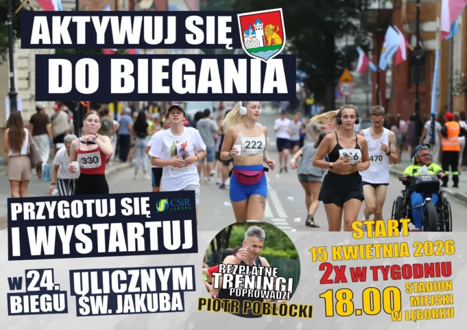 Lębork rozpoczyna wielkie odliczanie do 24. Ulicznego Biegu św. Jakuba, który odbędzie się 25 lipca 2026 roku. Aby pomóc mieszkańcom w przygotowaniach do tego najważniejszego wydarzenia sportowego w mieście, Centrum Sportu i Rekreacji zainaugurowało bezpłatną akcję treningową „Aktywuj się do biegania”.