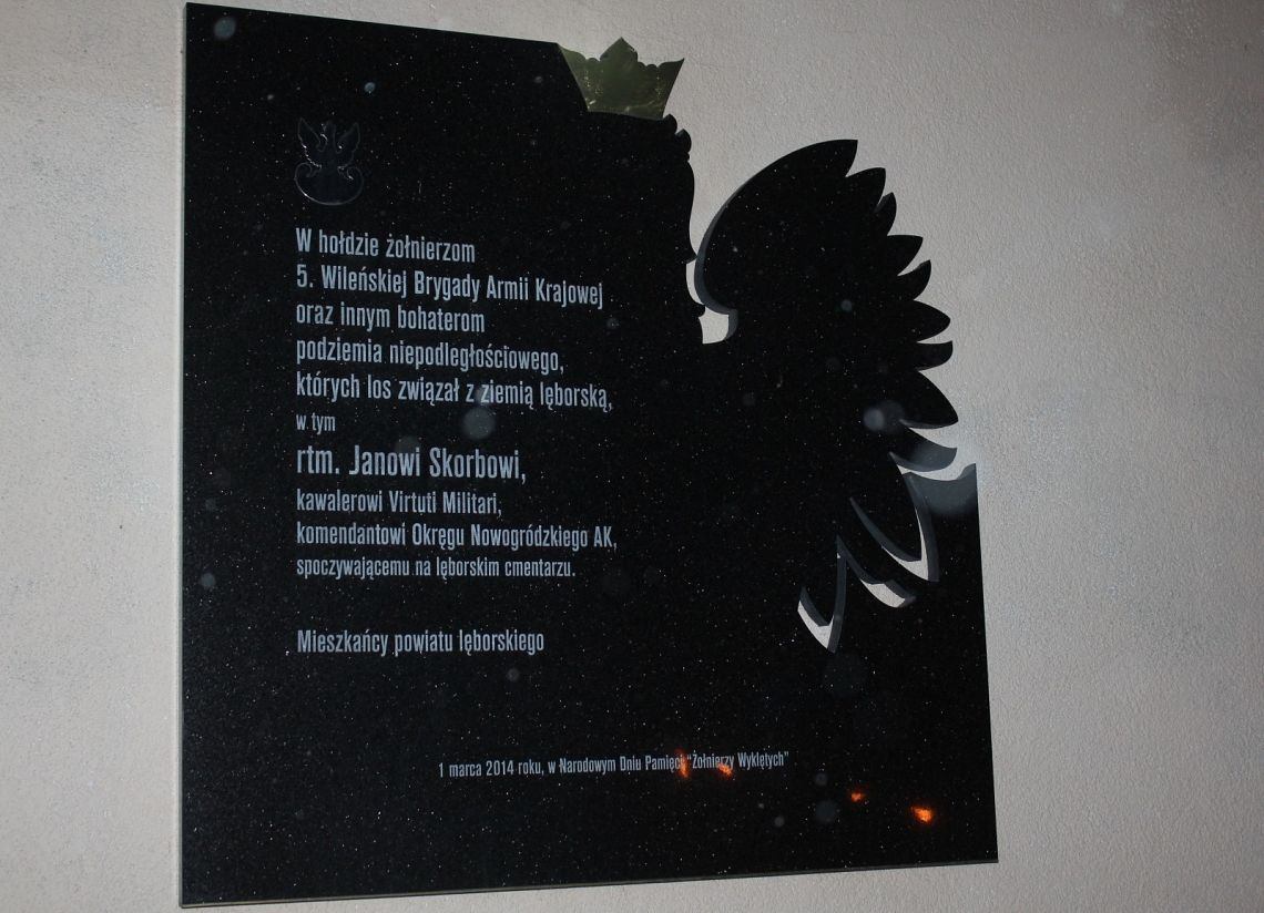 1 marca w Lęborku uroczyście obchodzić będziemy Narodowy Dzień Pamięci Żołnierzy Wyklętych. O godz. 11 w kościele pw. Miłosierdzia Bożego przy ul. Kasztanowej 12 doprawiona zostanie Msza Św., a po niej pod odsłoniętą w 2014 roku tablicą pamiątkową upamiętniającą 5. Wileńską Brygadę Armii Krajowej, żołnierzy podziemia niepodległościowego oraz spoczywającego na cmentarzu w Lęborku rtm. Jana Skorba złożone zostaną kwiaty i zapalone znicze.