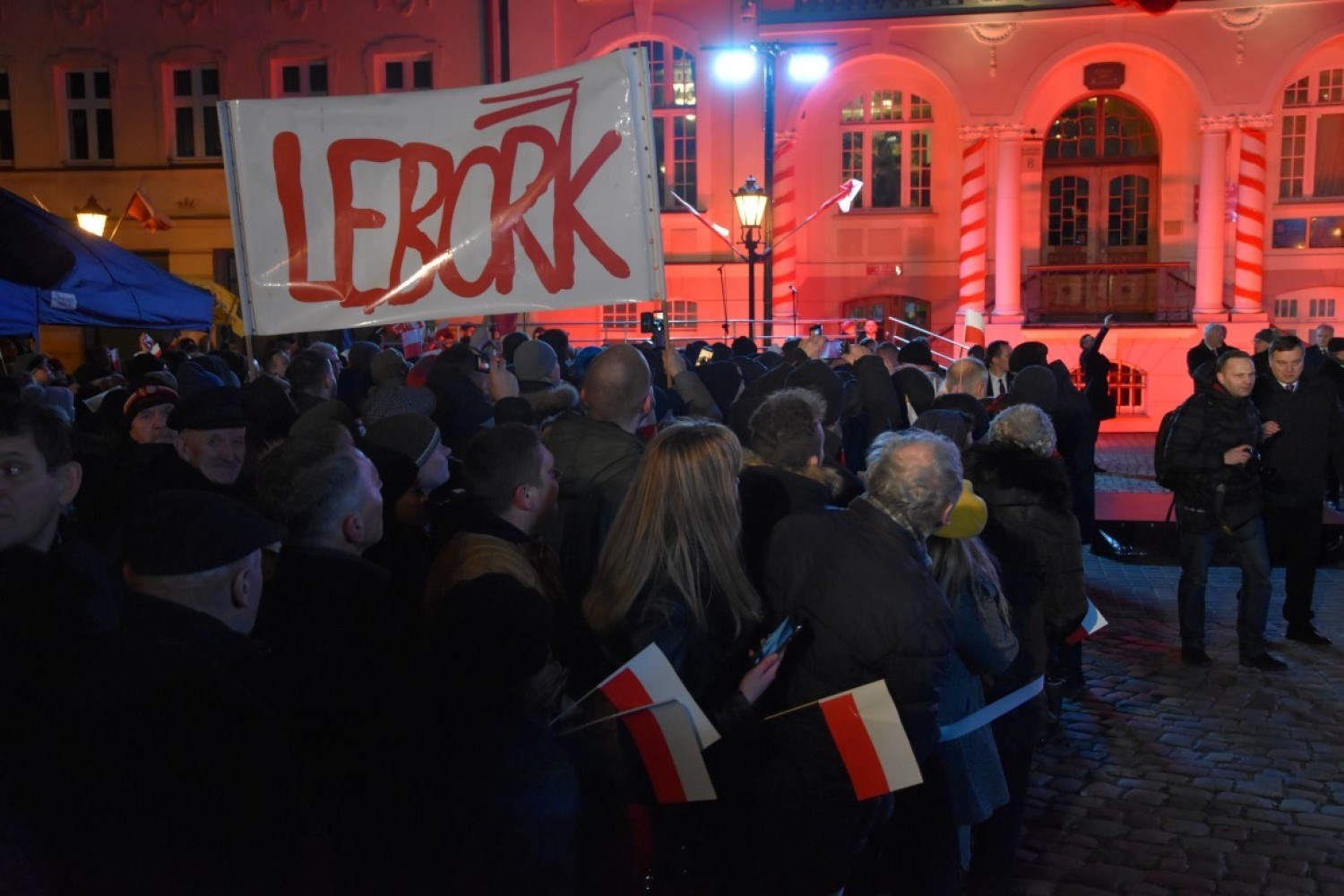 Pod pomnikiem Wejhera na głównym placu Wejherowa pokazał się też „LĘBORK”. Wszystko za sprawą coraz bardziej „kultowego” i zawsze widocznego transparentu z nazwą naszego miasta. W ostatnim tygodniu charakterystyczny baner z czcionką „solidarycą” wraz z lęborskim radnym Zbigniewem Rudykiem był w europarlamencie Brukseli, oraz w sobotę w Warszawie na prorządowej manifestacji „Kasta Basta”.
