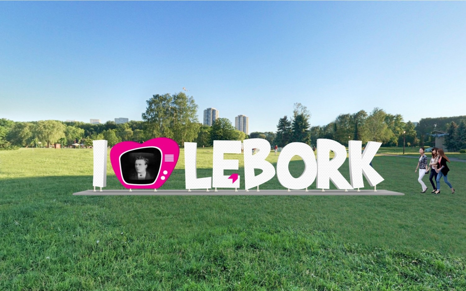 Wielka konstrukcja w formie napisu o wymiarach 2m x 11m miała by stanąć na skwerze przy rondzie Jana Pawła II/Abrahama, przed stacją paliw CIRCLE K. Wg wnioskodawcy byłaby to atrakcja wizerunkowa miasta, która z pewnością zaskoczy turystów i przejezdnych. Będzie dowodem silnej identyfikacji mieszkańców ze swoją małą ojczyzną. Napis pobudzi odczucia patriotyczne oraz ugruntuje wiedzę historyczną. Instalacja zawiera w sobie ławki do siedzenia, umiejscowione na dolnych częściach liter, posłuży zatem jako swoisty „meeting point” dla przechodniów i turystów, budząc zainteresowanie nawet po zmroku. Litery napisu będą podświetlone, mając jednocześnie opcję zmiany kolorów iluminacji. Najbardziej innowacyjnym elementem projektu, będzie wbudowany w SERCE jego napisu – TELEWIZOR, zapewniający możliwość wyświetlenia filmów z oprawą dźwiękową i wszelkich innych wizualizacji o naszym mieście. Ten unikatowy symbol telewizora wkomponowany w napis, to jedyny taki pomysł w Polsce i na świecie, gdzie treść napisu współgra z multimedialnym atrybutem. Dla lęborczan jest on istotny, bo przywołuje wiedzę o słynnym wynalazcy i naukowcu Paulu Nipkowie, urodzonemu w Lęborku. Notatka o jego osobie również będzie częścią instalacji. Łącząc nowoczesność z tradycją, proponujemy taki właśnie międzypokoleniowy pomost, w formie okazałej konstrukcji, której nie sposób przeoczyć i która będzie pozytywną stymulacją dla turystów i dumą dla lęborczan.
