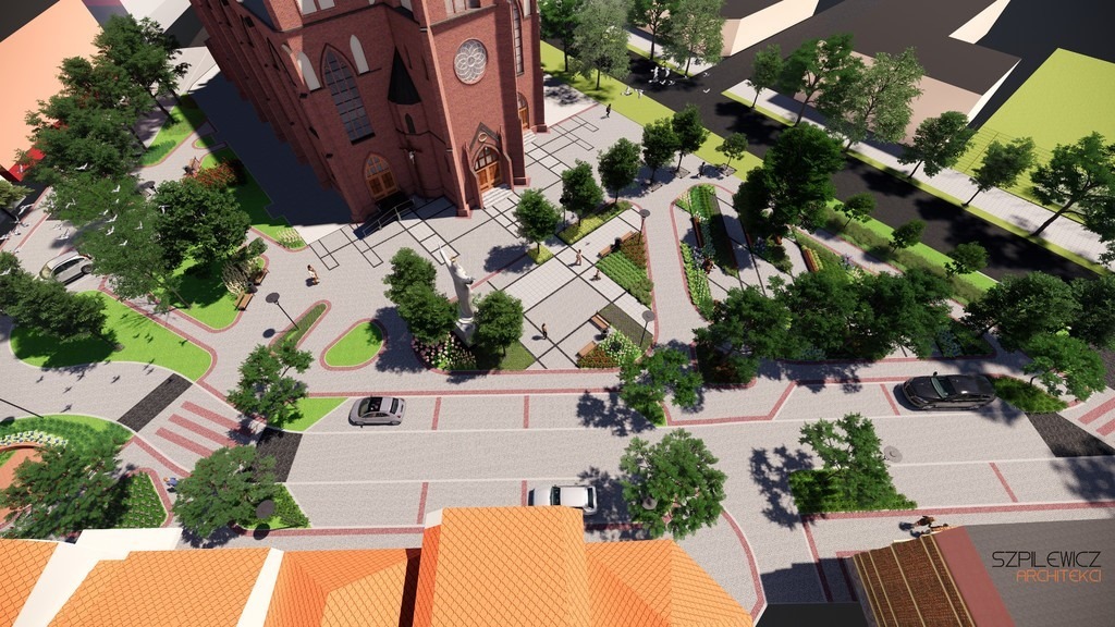 Jak czytamy w opisie zaprezentowanym przez projektantów: „Plac Kopernika stanowi kompletny kompozycyjnie historyczny układ urbanistyczny oparty na osi kompozycyjnej ul. Orzeszkowej. Centralny punkt kompozycji placu stanowi wpisany do rejestru zabytków kościół p.w. Najświętszej Maryi Panny Królowej Polski.