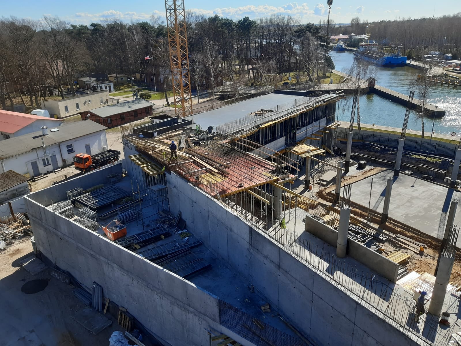 Koncepcję budynku wykonała pracownia Plus3Architekci Sp. z o.o. z Warszawy – to propozycja jednorodnej bryły o powierzchni zabudowy trzech tysięcy metrów kwadratowych, otwartej na łebską promenadę i kanał portowy. Zaprojektowany budynek ma oryginalną, nowoczesną i dynamiczną formę. Kształt i nachylenie frontowej falującej fasady pokrytej giętymi drewnianymi listwami oraz pionowo rozpięte liny nadadzą obiektowi żeglarski charakter i nawiążą do wyrzuconego na brzeg konaru, kadłuba statku, morskich fal czy nadmorskich wydm.