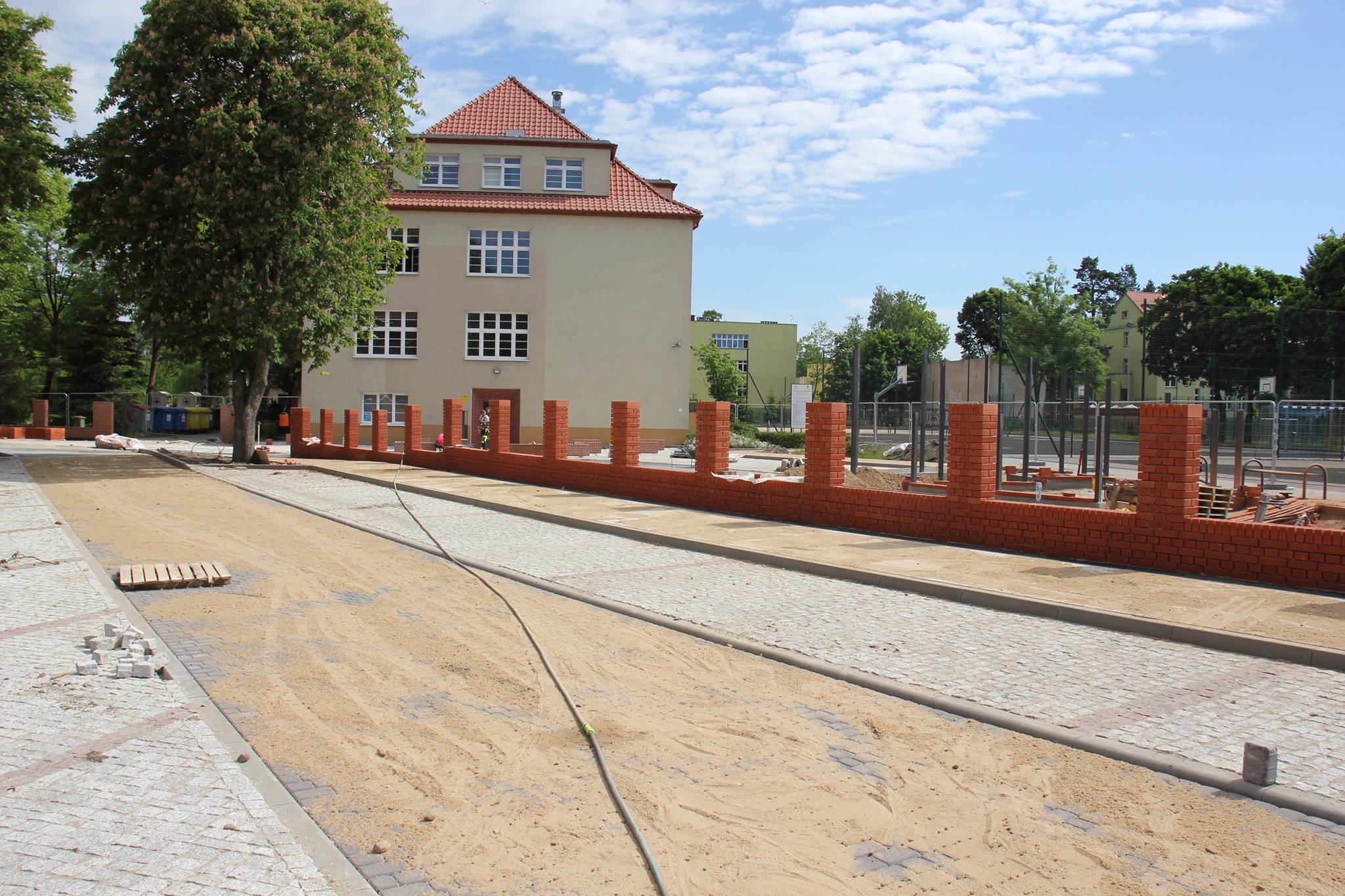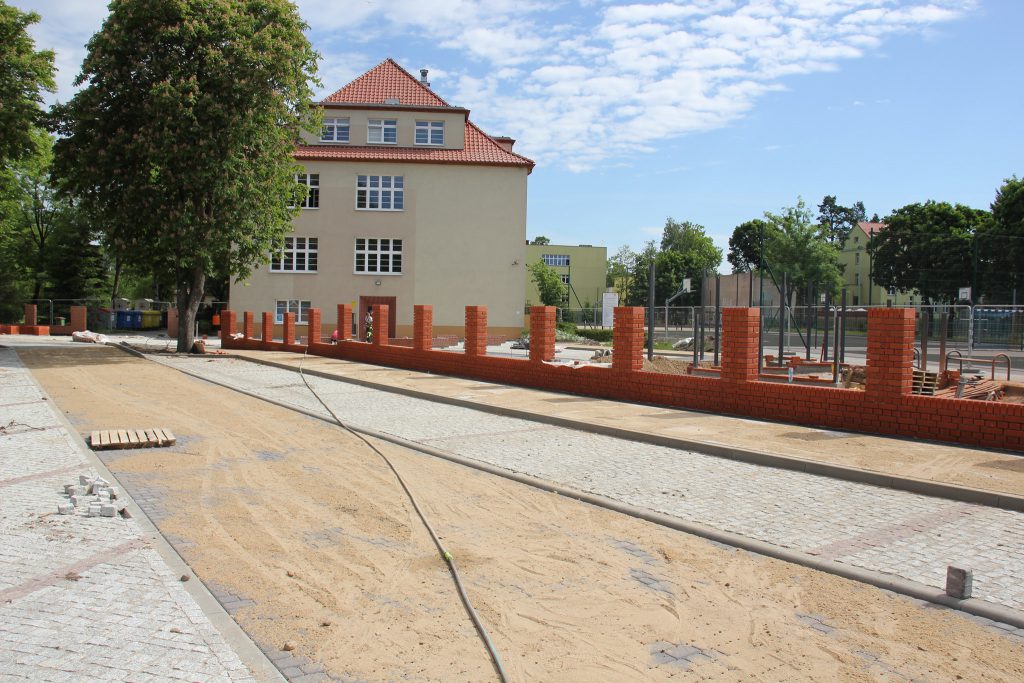 W ramach wartej 840 tys. zł inwestycji powstaje też utwardzony i odwodniony parking na 35 miejsc. Część z nich zlokalizowana będzie przed ogrodzeniem szkoły. Miejsca te będą ogólnodostępne dla wszystkich. Projekt parkingu i dziedzińca wykonała Pracownia Szpilewicz Architekci. Wykonawcą robót jest firma PHU Mański z Lęborka. W ramach inwestycji przebudowane zostanie także przejście dla pieszych przed szkołą od strony „Biedronki”. Będzie ono teraz dwuetapowe. Inwestycja ma być zakończona jeszcze przed pierwszym dzwonkiem 1 września 2021 roku.