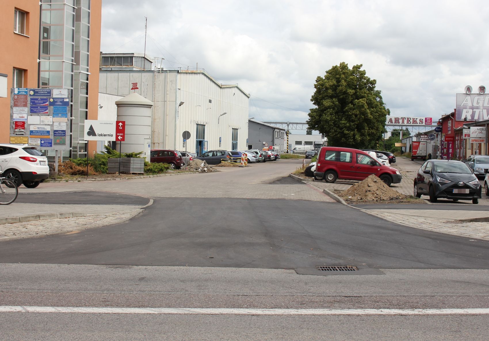 Przy dawnym ZWARZ-e trwa budowa drogi dla rowerów w ramach której przebudowano skrzyżowanie ulicy Zwarowskiej z Krzywoustego. Do sklepów dojedziemy teraz jednym, poszerzonym i wyprofilowanym wjazdem.