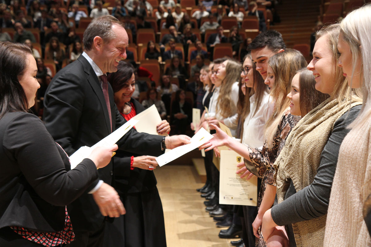 Uczennica ze Społecznego Liceum Ogólnokształcącego w Lęborku Zofia Klata oraz absolwent Szkoły Podstawowej nr 1 Mateusz Kamieniecki ze stypendium Marszałka Województwa Pomorskiego Mieczysława Struka dla najzdolniejszych uczniów na Pomorzu
