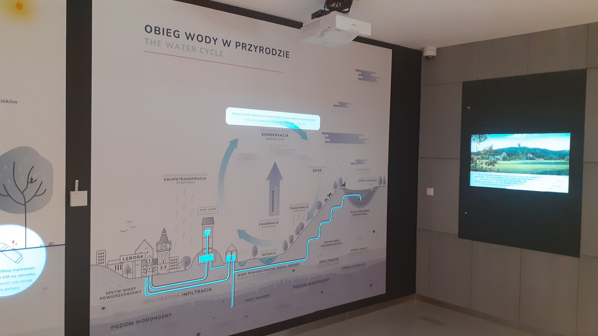 Na przykładzie Lęborka pokazano schemat obowiązujący praktycznie na całym świecie. Dzięki interaktywnej formie i wyświetlanej animacji młodsi i starsi mogą w przystępny sposób zapoznać się z uniwersalnymi zasadami obiegu wody w przyrodzie, także w języku angielskim.