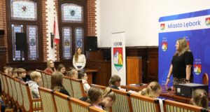 Lekcja samorządności w ratuszu. Ósmoklasiści odwiedzili lęborski Urząd Miejski