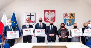 Wojewoda Pomorski obdarował samorządowców z powiatu lęborskiego czekami